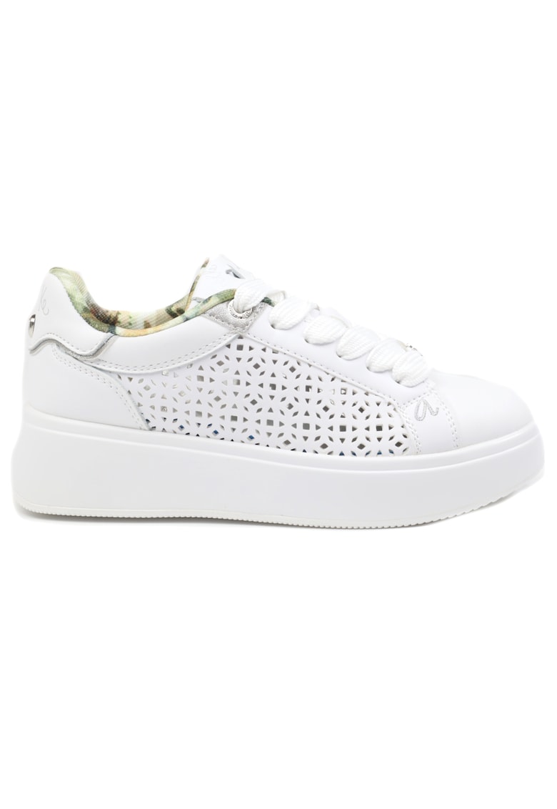 Характеристики Цвят: бял Връх: кръгъл Принт: без принт Тип на подметката: плоска Детайли: връзки за регулиране Технология: удобен и издръжлив Материал: екологична кожа Стил: ежедневен Закопчаване: връзки Допълнителна информация: комфортни Колекция: пролет – лято Състав …