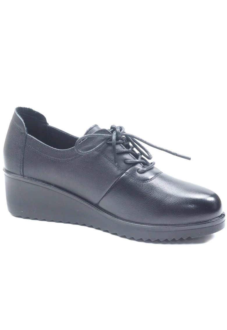 Характеристики Тип: ниски Материал: eстествена кожа Цвят: черен Принт: без принт Стил: ежедневен Връх: кръгъл Тип на тока: класически Тип на подметката: плоска Закопчаване: връзки Размери Височина на tок: 0 cm