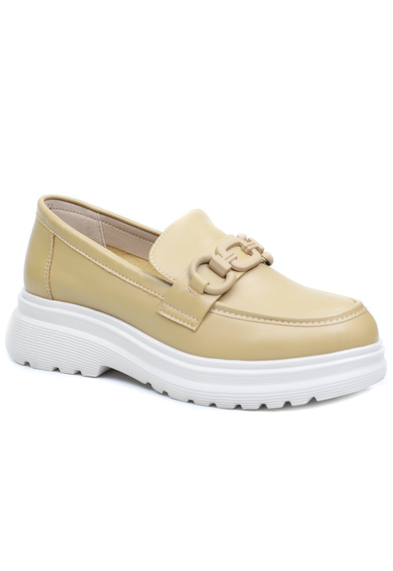 Характеристики Тип: с ток Материал: eстествена кожа Цвят: бежов Принт: без принт Стил: елегантен Връх: кръгъл Тип на тока: класически Тип на подметката: плоска Технология: ease – за оптимален комфорт Детайли: комфортни Закопчаване: без закопчаване Състав Горна част: кожа …