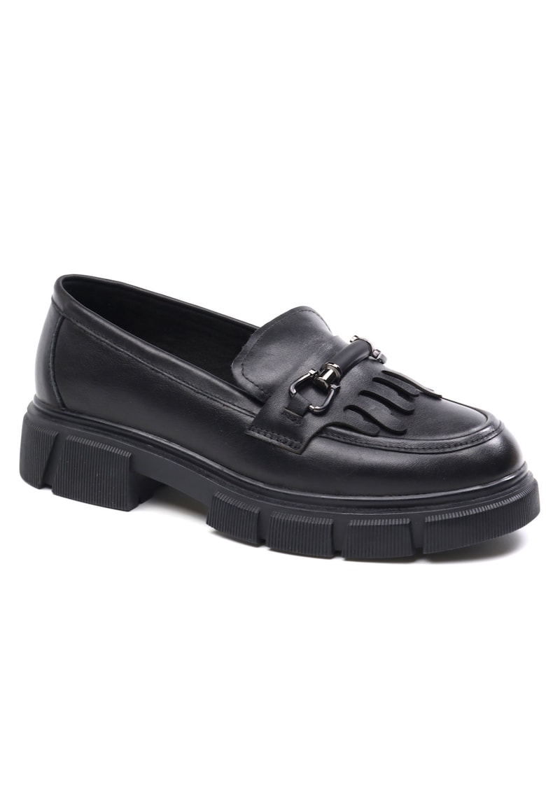 Характеристики Тип: ниски Материал: eстествена кожа Цвят: черен Принт: без принт Стил: ежедневен Връх: кръгъл Тип на тока: класически Тип на подметката: плоска Технология: ease – за оптимален комфорт Детайли: комфортни Закопчаване: без закопчаване Състав Материал подметка: …