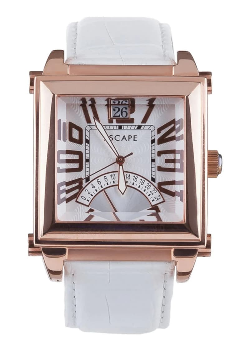 Инвестирайте в личния си стил и разгледайте останалата част от нашата колекция от маркови Часовници днес. От емблематични модни къщи до изгряващи дизайнери, ние ви предлагаме най-доброто от света на модата на едно удобно място. Влезте в свят на лукс, заедно с елегантност и несравним стил с Дамски часовник бяла каишка от екологична кожа – розово-златист стоманен корпус – 36 мм – водоустойчив на 5 ATM Escape. Пазарувайте сега и се насладете на привлекателността на марковата мода.