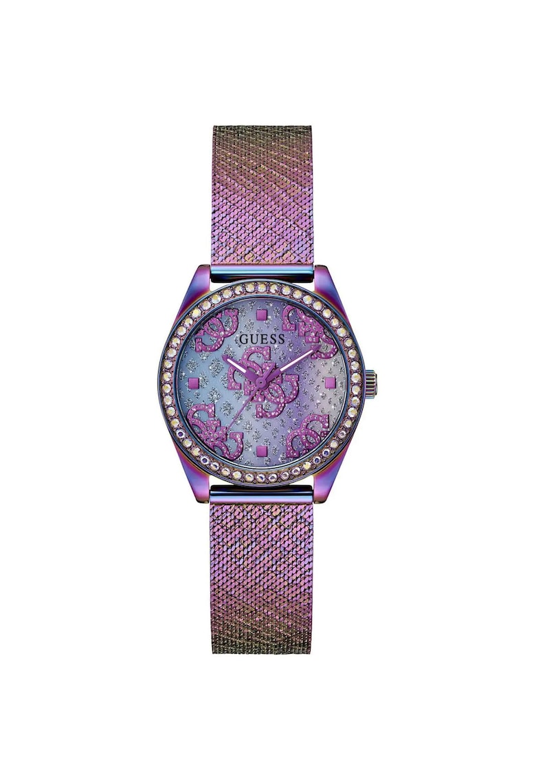 Марковите Часовници ви позволяват да изразите своя уникален стил. Независимо дали се обличате за официално събитие, ходите на фитнес или просто търсите ежедневни неща от първа необходимост, Дамски часовник лилав – 32мм – верижка от неръждаема стомана – водоустойчив на 30м GUESS е продуктът за вас.