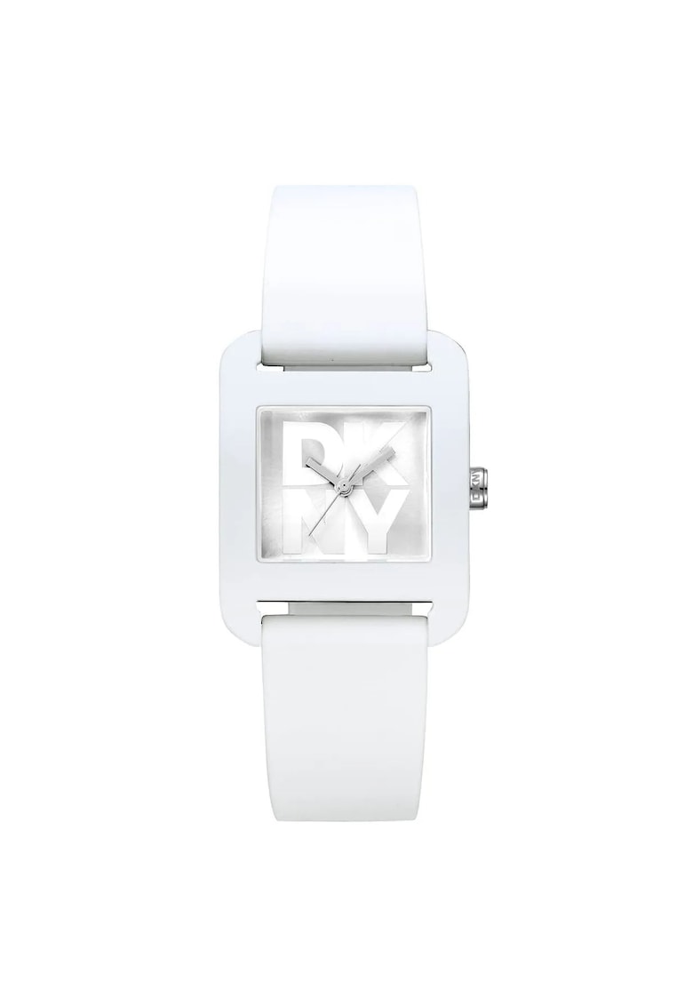 Дамски часовник модел DK1L002P0015 – водоустойчив 3 ATM – пластмасов корпус – силиконова каишка – бял – 26×30мм DKNY
