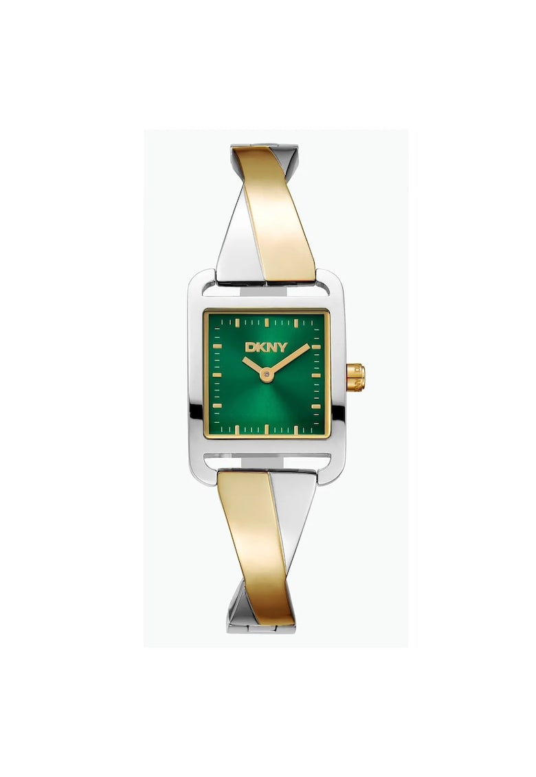 Дамски часовник модел DK1L005M0155 – 22×30 мм – златист/сребрист – зелен циферблат – кварцов механизъм – стоманена каишка – 3 ATM DKNY