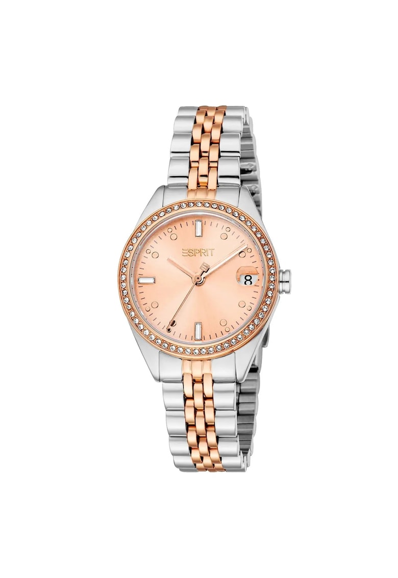 Дамски часовник модел ES1L428M0075 – корпус от стомана 30 мм – розово-златна стоманена каишка – водоустойчивост 3 ATM Esprit