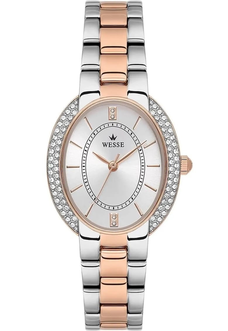Дамски часовник модел WWL113006 – правоъгълна каса 27.5×33.5мм – стомана – розово-златист/сребрист – водоустойчив 3 ATM Wesse