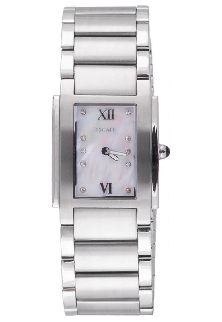Марковите Часовници ви позволяват да изразите своя уникален стил. Независимо дали се обличате за официално събитие, ходите на фитнес или просто търсите ежедневни неща от първа необходимост, Дамски часовник стоманена каишка – правоъгълен корпус 34 мм – водоустойчивост 5 ATM – сребрист/бял Escape е продуктът за вас.
