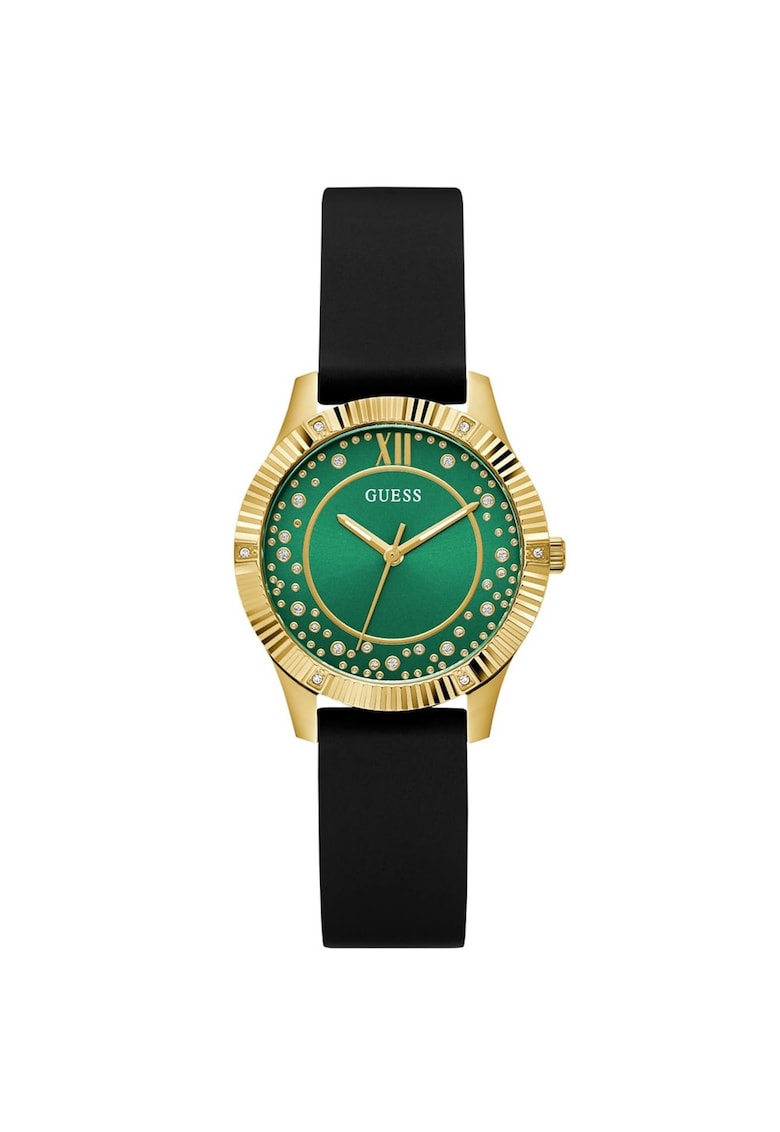 Една от най-новите тенденции в категория Часовници. Добавете към своя стил с нашата изискана колекция от Часовници на GUESS. Ние разполагаме с перфектните артикули, които да допълнят всяко облекло и да направят трайно впечатление. Нашата внимателно подбрана селекция модни аксесоари включва най-добрите марки и изключителни дизайни, гарантиращи изключително качество. Характеристики Механизъм: кварцов Тип дисплей: аналогов Стил: елегантен Функции: показва минути Степен на водоустойчивост: 3 atm Циферблат Материал на стъклото: минерално стъкло Цвят циферблат: зелен Вид разграфяване на циферблата: точки Рамка Форма на рамката: кръгла … от GUESS ще добави нотка елегантност, подчертаващ Вашият стил. Нашите модни аксесоари ще превърнат външния ви вид от обикновен в необикновен. Пазарувайте сега и разгърнете своята креативност с нашата широка гама от Часовници.