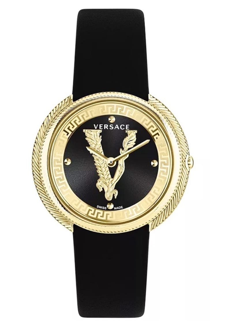 Дамски часовник Thea – черна кожа – 38 мм – водоустойчив 5 ATM – черно/златно Versace