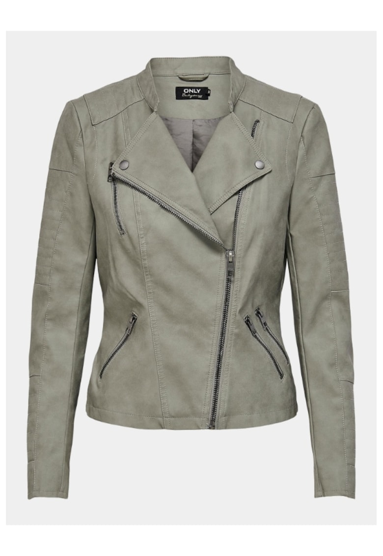 Относно Дамско яке САМО 303319083 Еко кожа – Сив Only