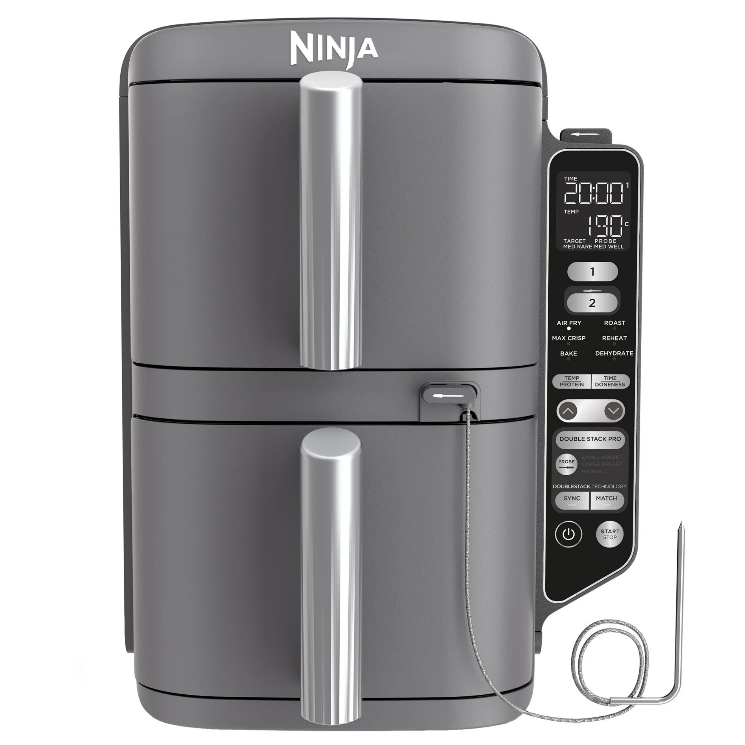 Двоен фритюрник с горещ въздух Ninja SL451EU, 2470W, 9.5 л, Цифров термометър, 2 кошници, 6 програми, Max Crisp, Sync & Match, Сив