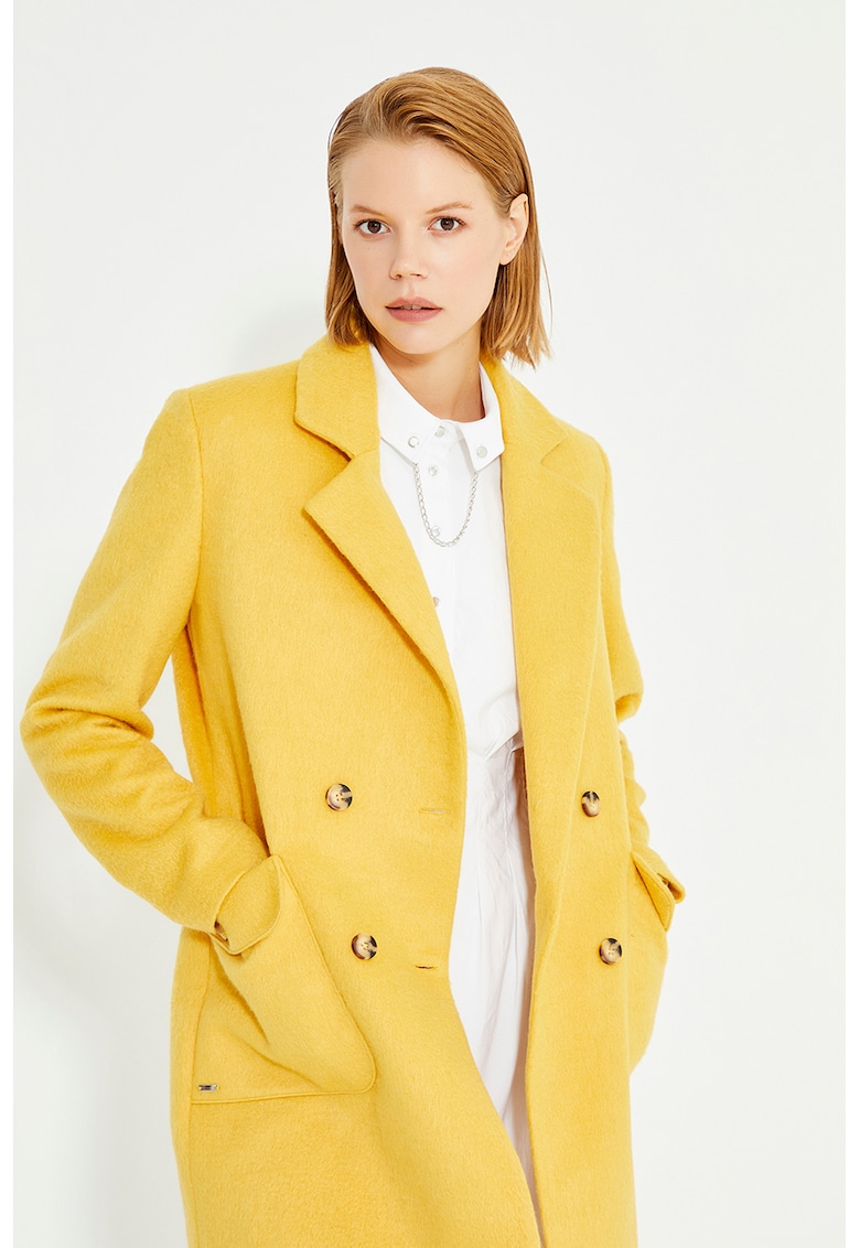 Двуредно палто с вълна – Шафраново жълто Just Like You