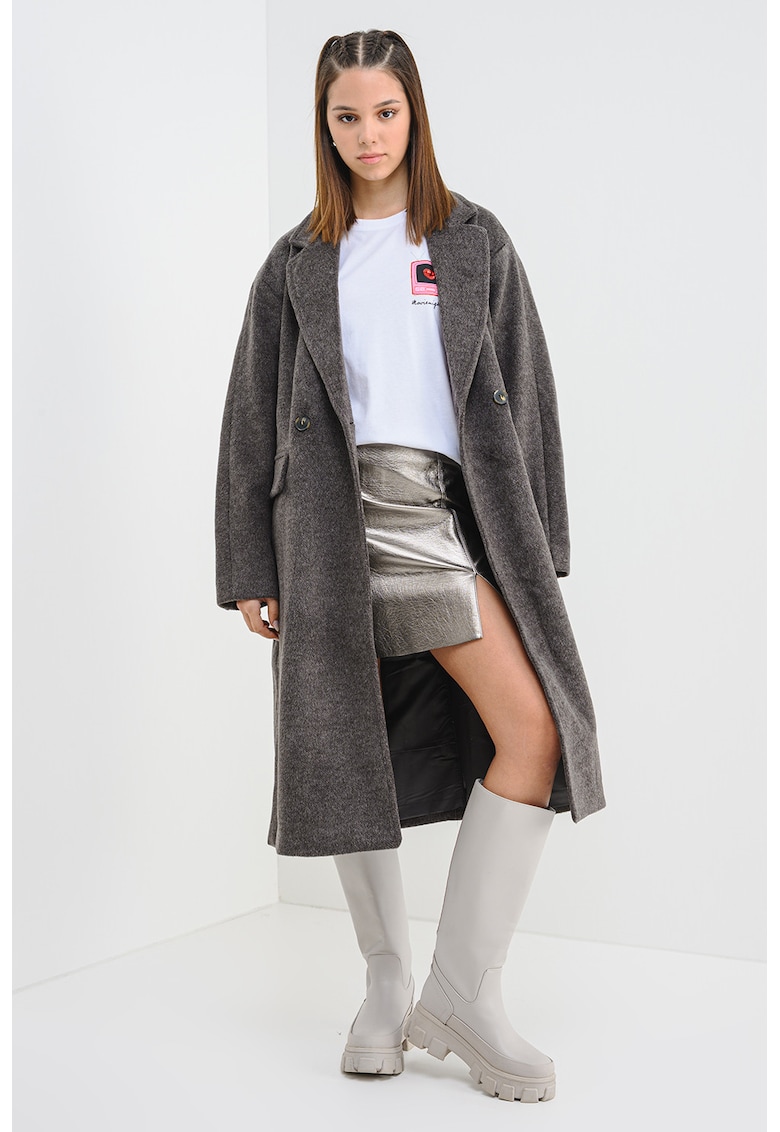 Характеристики Тип продукт: палто Цвят: меланж тъмно сиво Принт: без принт Стил: ежедневен Материал: синтетичен Кройка: свободна Яка: ревери Дължина ръкав: дълъг ръкав Джобове: 2 с капаче Закопчаване: копчета Състав Външна част: 100% полиестер Информация за модел Моделът …