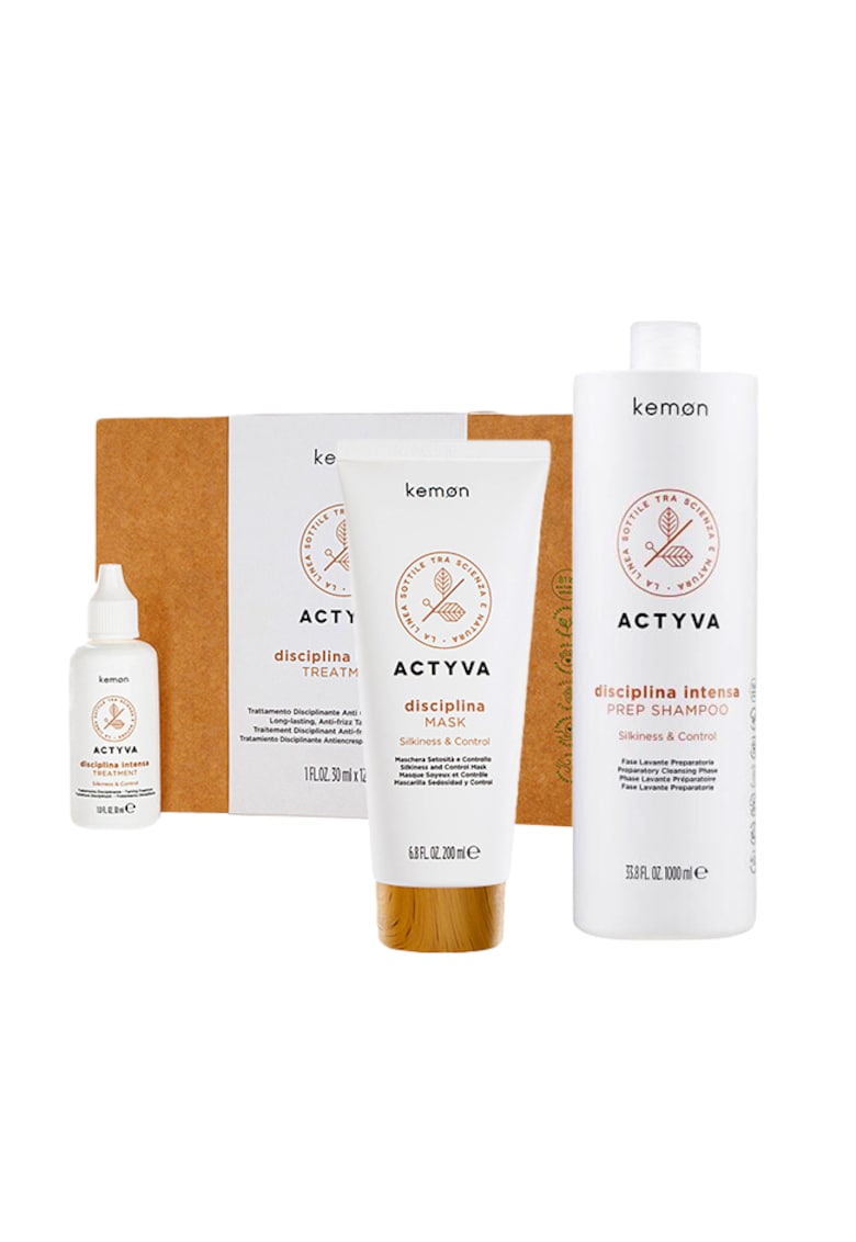 Дисциплиниращ комплект Actyva Disciplina – Подготвителен шампоан 1000 мл – Маска 200 мл – Серум 12 х 30 мл Kemon