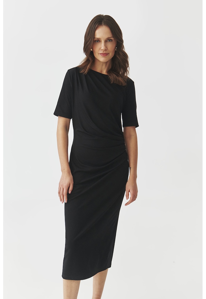 - Висококачествени материи – Драпирана миди рокля Primrose – Черен Tatuum е продукт изработен от най-добрите материи, осигуряващи комфорт и стил.