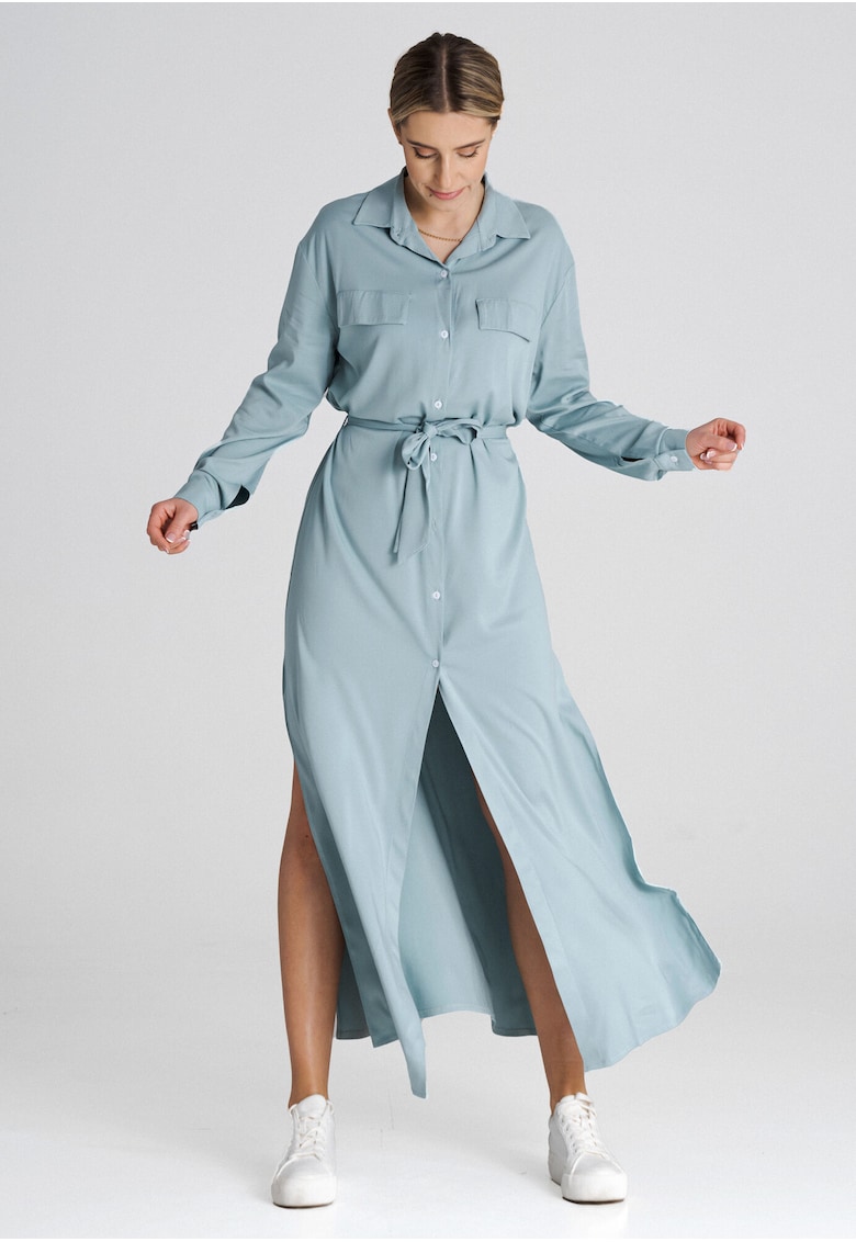 Дълга рокля-риза мента – дълги ръкави – класическа яка – полиестер Figl на ниска цена