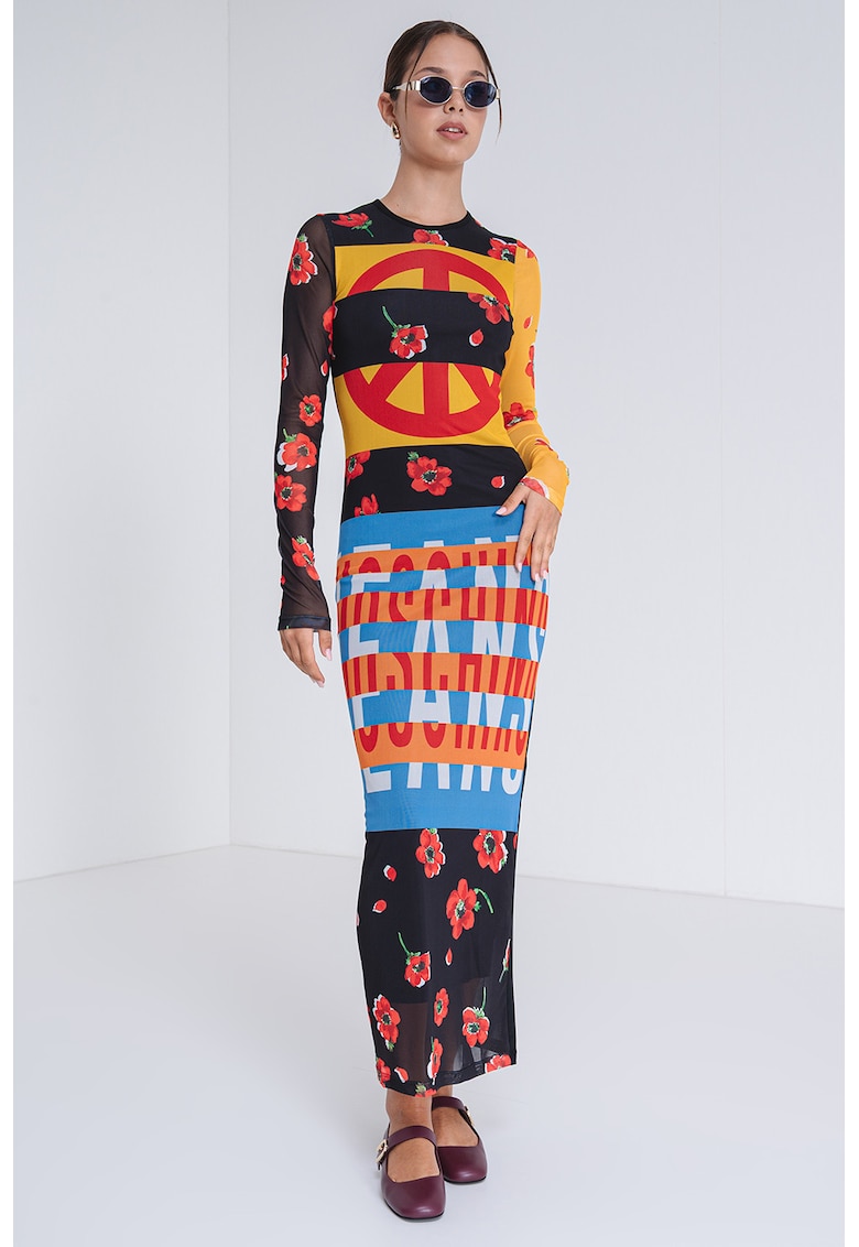 - Висококачествени материи – Дълга рокля с принт Moschino Jeans е продукт изработен от най-добрите материи, осигуряващи комфорт и стил.