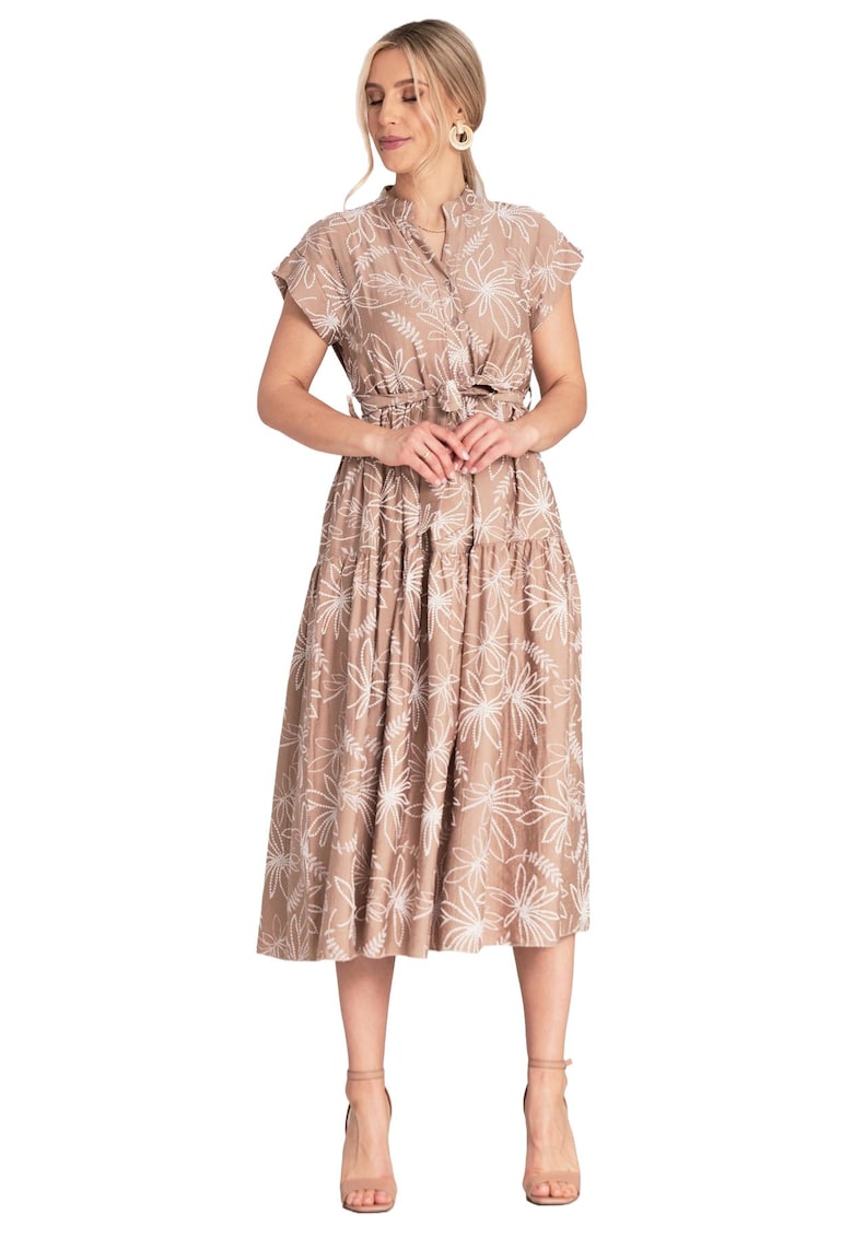 Дълга рокля с флорален принт M1180 – висока яка – бежово – вискоза – найлон – Един размер Figl