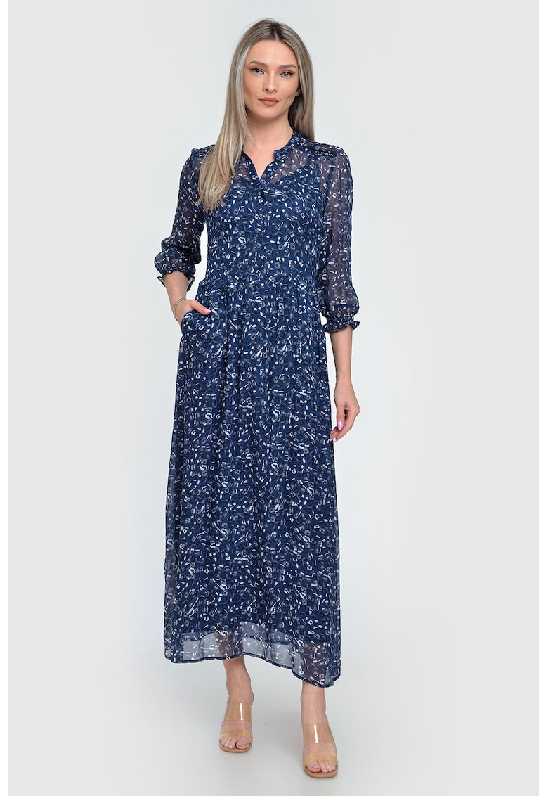 Дълга рокля – щампован воал – Ligias – синьо GIORGAL