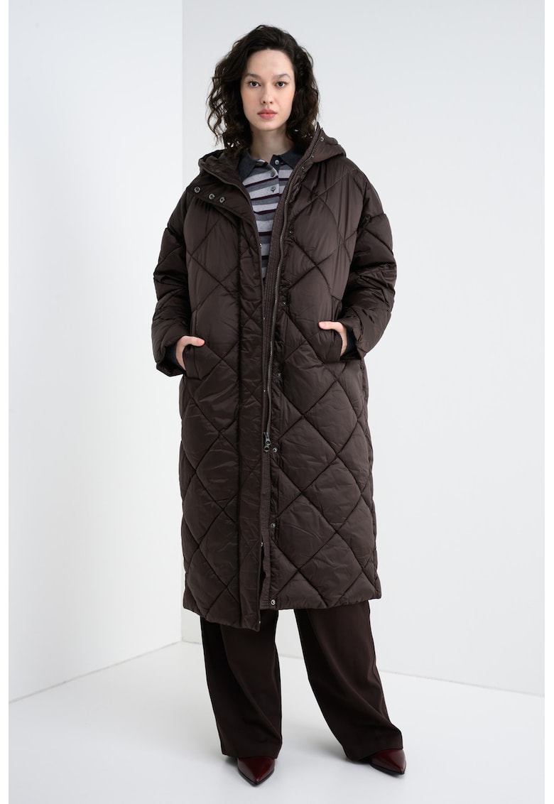 Дълго капитонирано зимно яке с качулка – Тъмнокафяв Stefanel