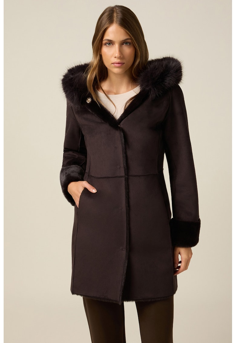 Дълго палто от еко вълна с качулка Oltre