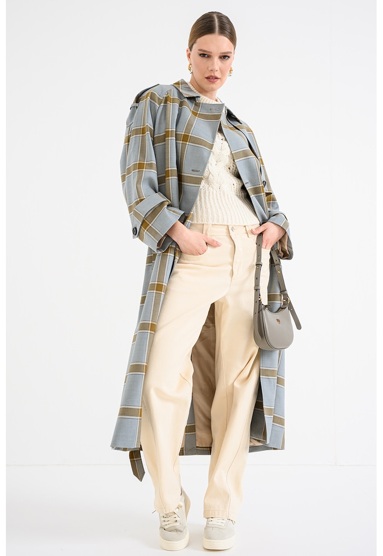 Дълъг тренч с вълна на каре – Каки/Син Tommy Hilfiger
