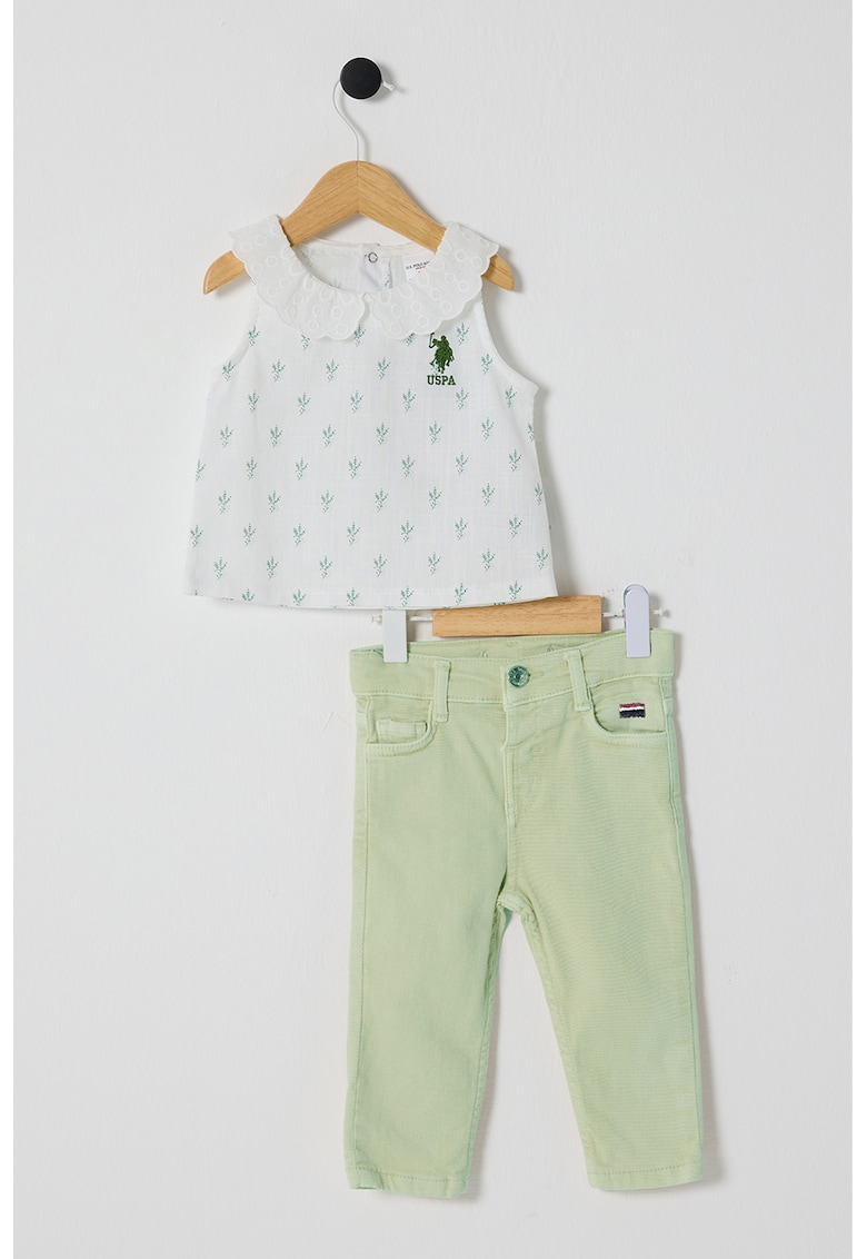 Относно Дънки и тениска с принт – 2 части – Бял/Шам фъстък зелено US Polo Assn