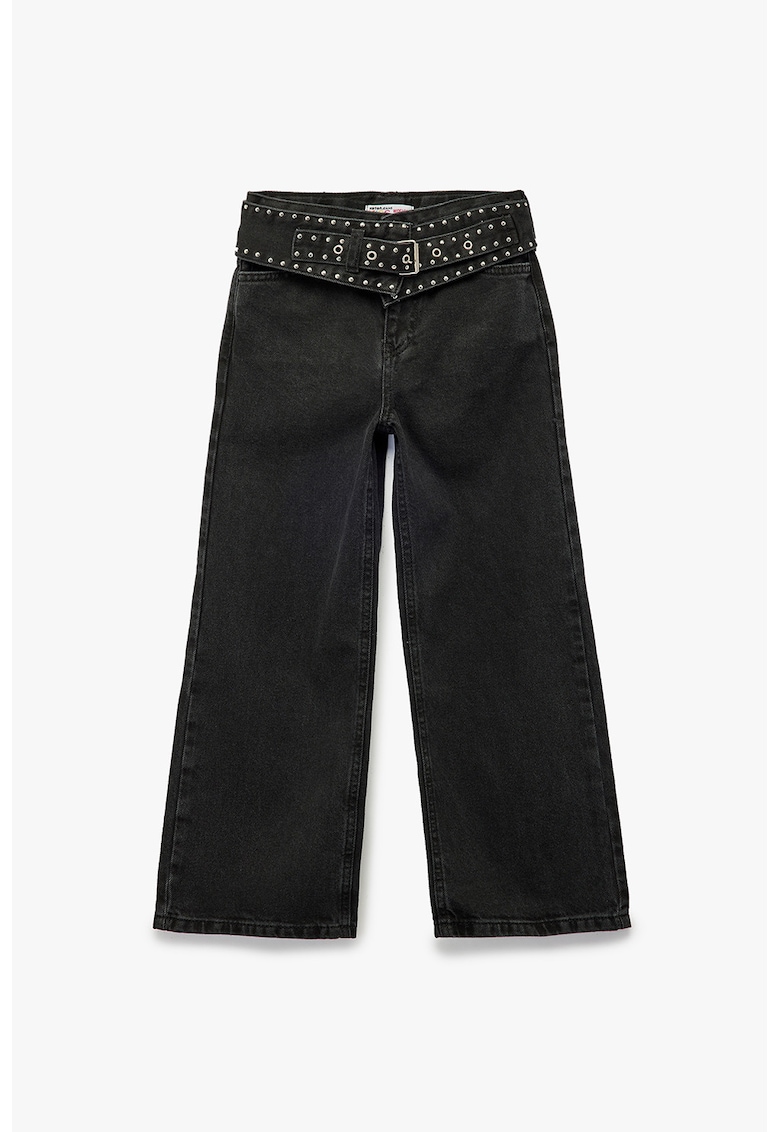 Характеристики Тип продукт: дънки Цвят: черен Материал: памук – дънков плат Стил: ежедневен Принт: без принт Кройка: широк крачол Талия: средновисока Детайли: колан с капси Колекция: пролет – лято – есен – зима Състав Външна част: 100% памук