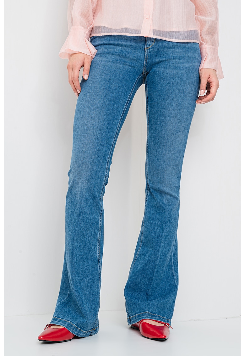 Характеристики Цвят: син Принт: без принт Кройка: широк крачол Материал: памук Талия: средновисока Дължина: дълъг Джобове: 5 броя Закопчаване: цип – копчета Състав Външна част: 98% памук – 2% еластан Информация за модел Моделът е облечен с размер 27. Размер на модела: 173 cm …