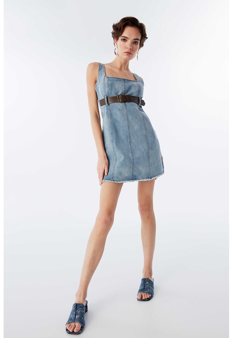 Дънкова рокля с квадратно деколте – Светлосин TWIST