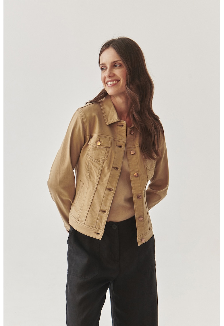 Характеристики Тип продукт: яке Цвят: бежов Принт: без принт Материал: памук Кройка: стандартна Качулка: без качулка Дължина ръкав: дълъг ръкав Джобове: 2 пришити на гърдите Закопчаване: копчета Състав Външна част: 99% памук – 1% еластан