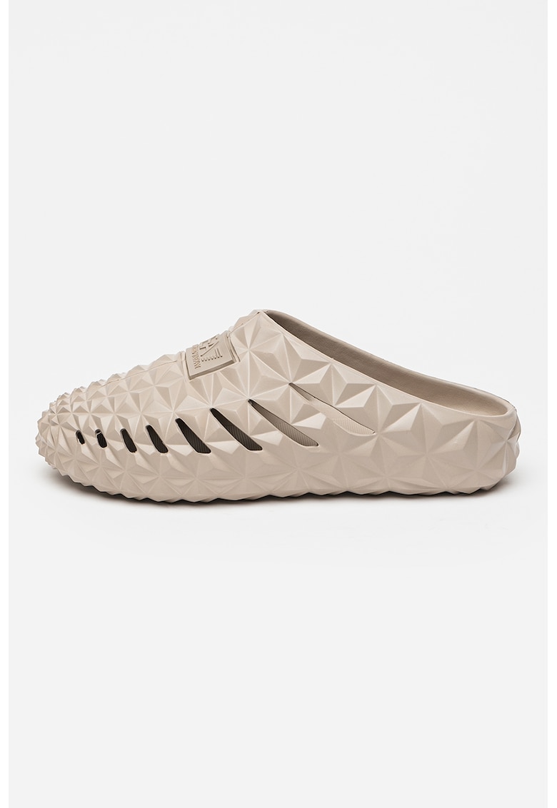 Характеристики Тип продукт: чехли Цвят: светло кафяво Материал: полиуретан – ацетат Стил: ежедневен Принт: без принт Връх: кръгъл Тип на подметката: плоска Детайли: отвори – 3d детайли Състав Горна част: други материали Материал интериор: друг материал Материал подметка: …