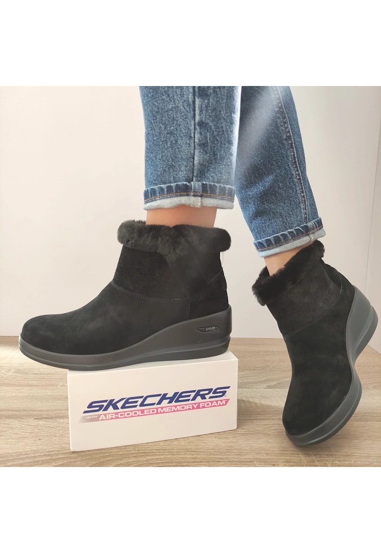 Оригинални Ежедневни дамски ботуши 144470 Bbk Black Velvet – Черно кадифе – Черен Skechers