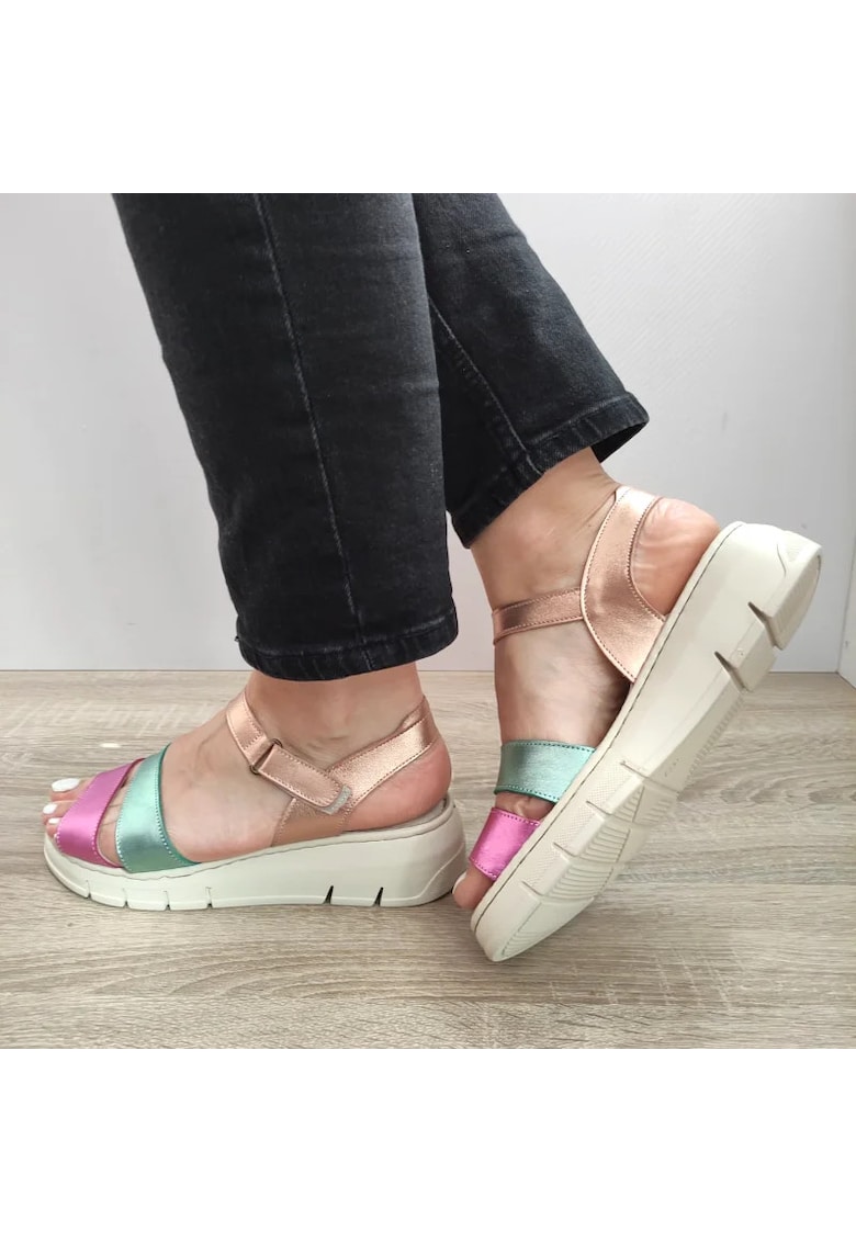Оригинални Ежедневни дамски сандали Fr-404 розов с металик зелен и бежов – розов – Розово BIO FLEX