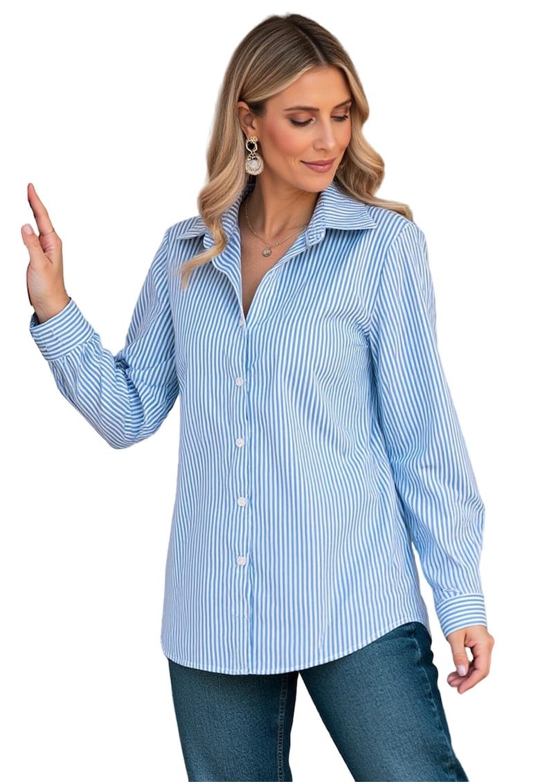 Елегантна риза сини райета – удобна – полиестер/еластан – размер SM Figl