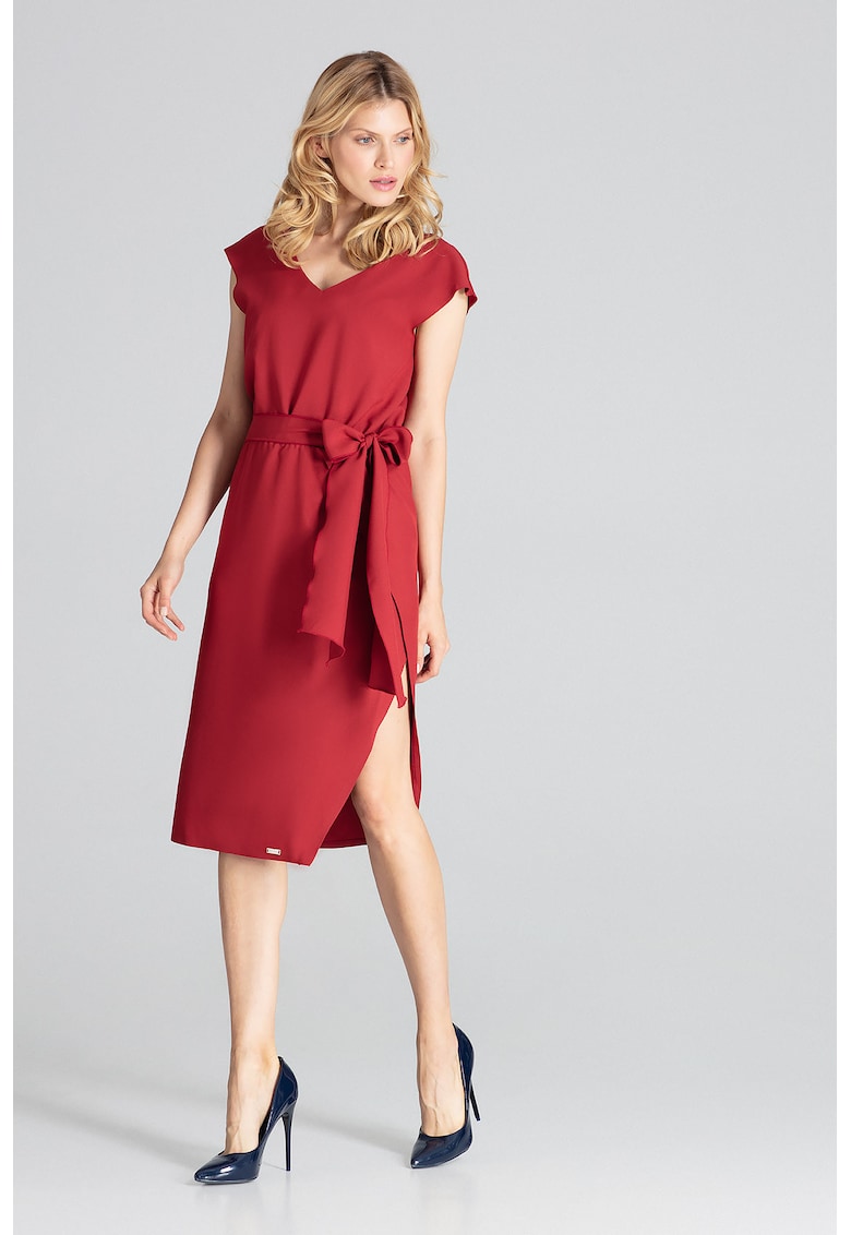 Елегантна рокля бордо – с панделка – полиестер Figl на ниска цена