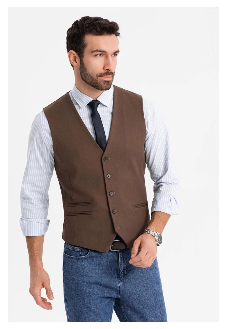 Характеристики Цвят: кафяв Принт: без принт Материал: полиестер Кройка: стандартна Дължина ръкав: без ръкав Закопчаване: копчета