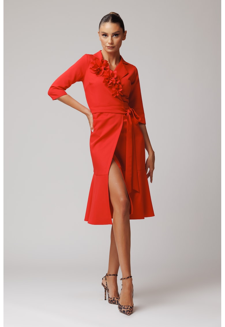 Застъпена рокля с шпиц – Аленочервен concept A trois
