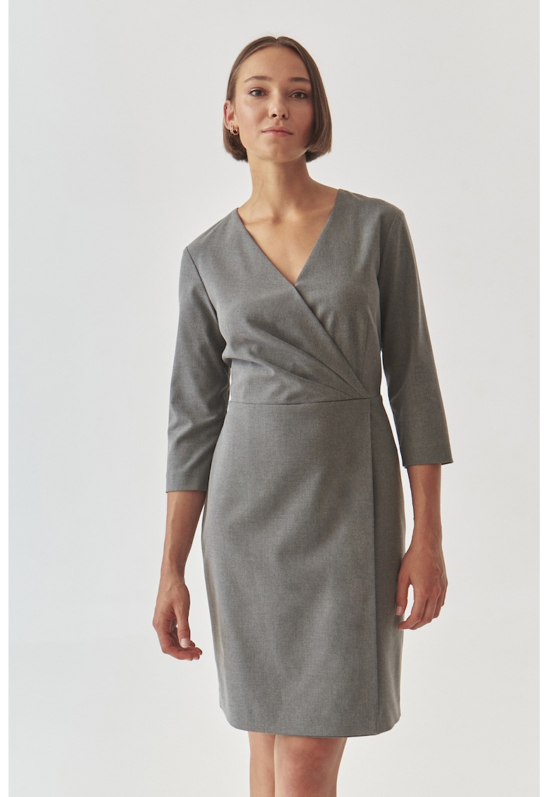 Застъпена рокля с 3/4 ръкави – Сив меланж Tatuum