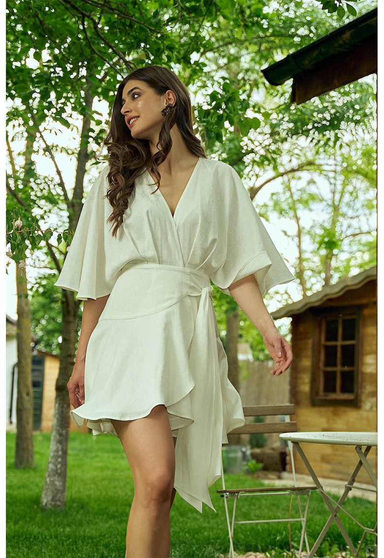 Застъпена рокля Franca с лен – Мръснобял Noria Anis