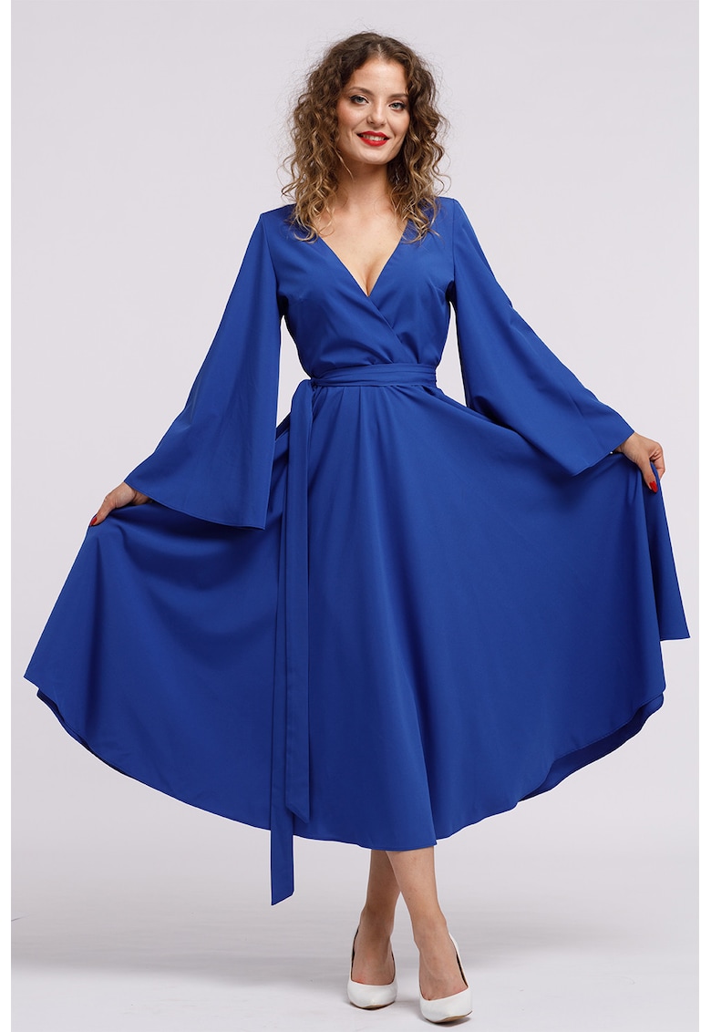 Характеристики Цвят: кралско синьо Стил: ежедневен Материал: полиестер – еластан Принт: без принт Кройка: застъпена Дължина: дълга Деколте: шпиц Ръкави: тип пеперуда Дължина ръкав: дълъг ръкав Състав Външна част: 95% полиестер – 5% еластан