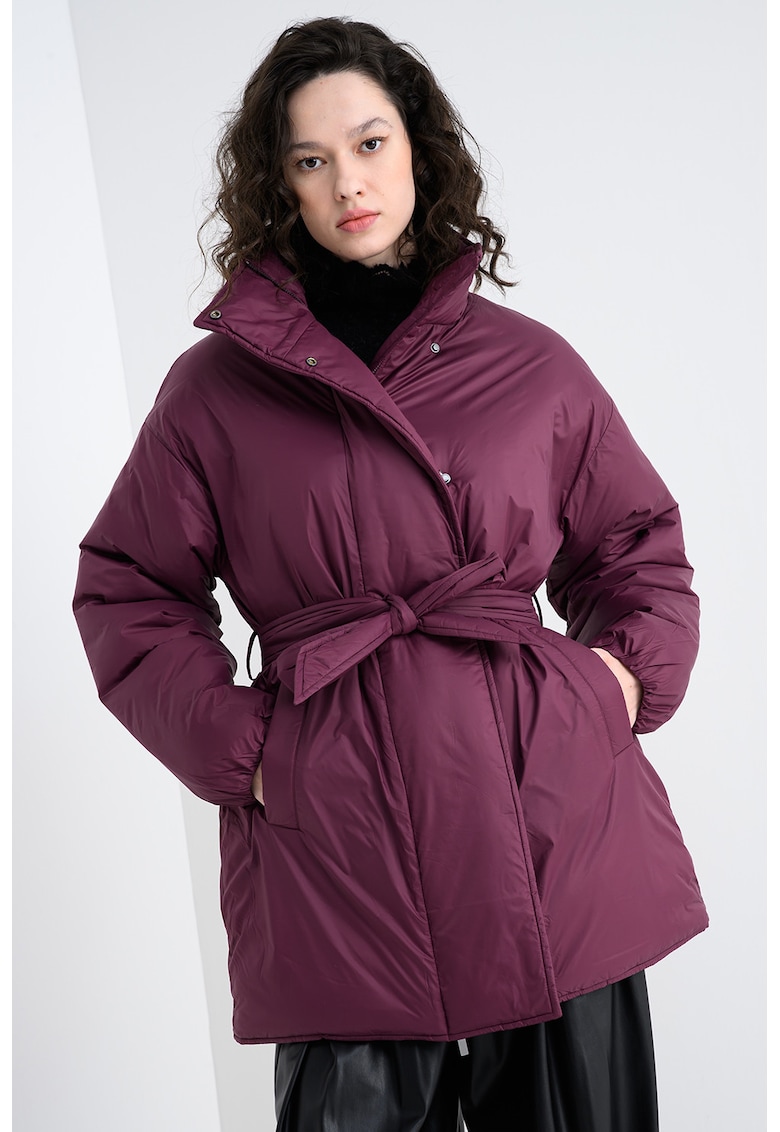 Зимно капитонирано яке с връзка – Тъмновиолетов United Colors of Benetton