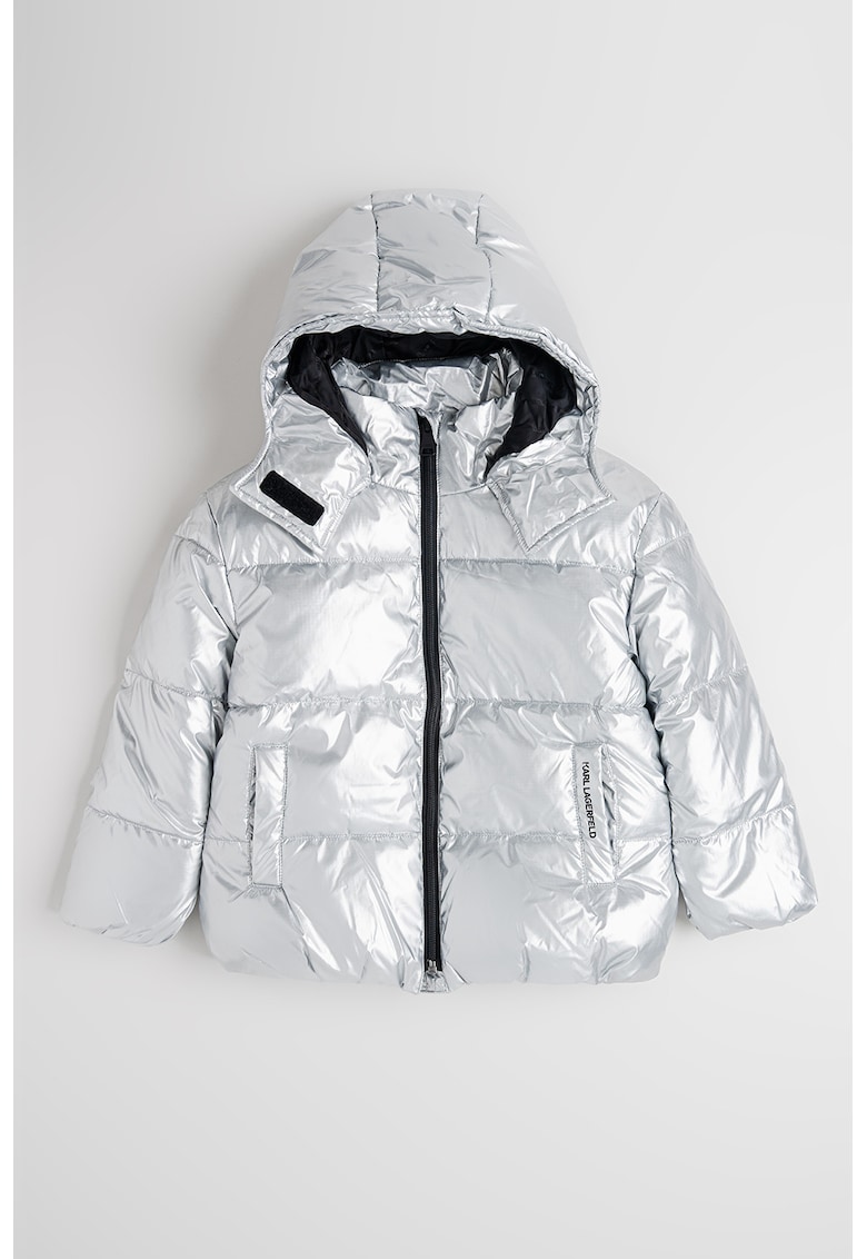 Зимно капитонирано яке с качулка и метален ефект – Сребрист KARL LAGERFELD KIDS