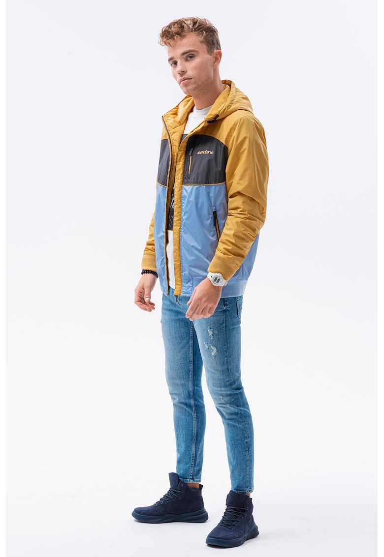 Зимно яке с цип и дизайн с цветен блок – Син/Тъмножълт OMBRE