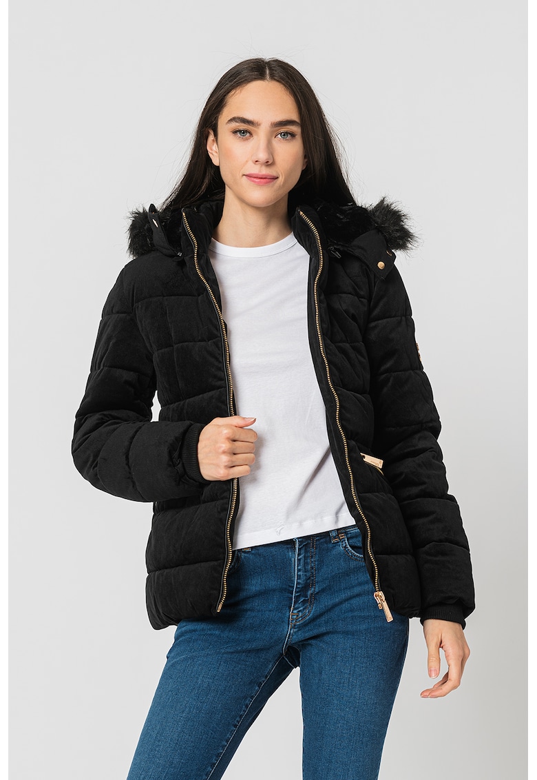 Характеристики Тип продукт: зимно яке Цвят: черен Принт: без принт Материал: полиестер Кройка: стандартна Качулка: с качулка Дължина ръкав: дълъг ръкав Джобове: 2 с цип отвън Детайли: капитониран дизайн – подплатен модел – кадифе – еко пух – отделяща се качулка Закопчаване: …
