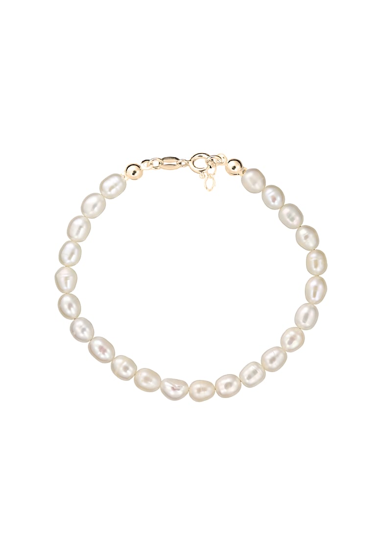 Златна гривна 585 – 14К с бели култивирани перли 6 -5 мм – класическа закопчалка e-Crystal