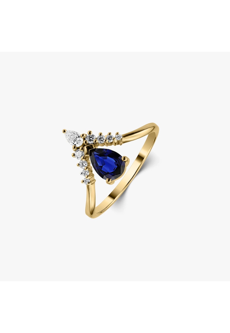 Златна халка Love Story – Сапфир и диаманти INDIRA