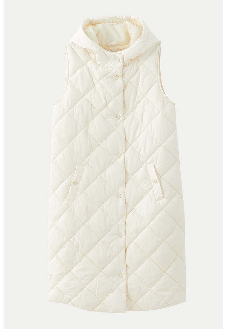 Характеристики Тип продукт: елек Цвят: слонова кост Принт: без принт Материал: полиестер Кройка: стандартна Качулка: с качулка Дължина ръкав: без ръкав Закопчаване: капси Състав Външна част: 100% полиестер Подплата: 100% полиестер Подплата: 100% полистер