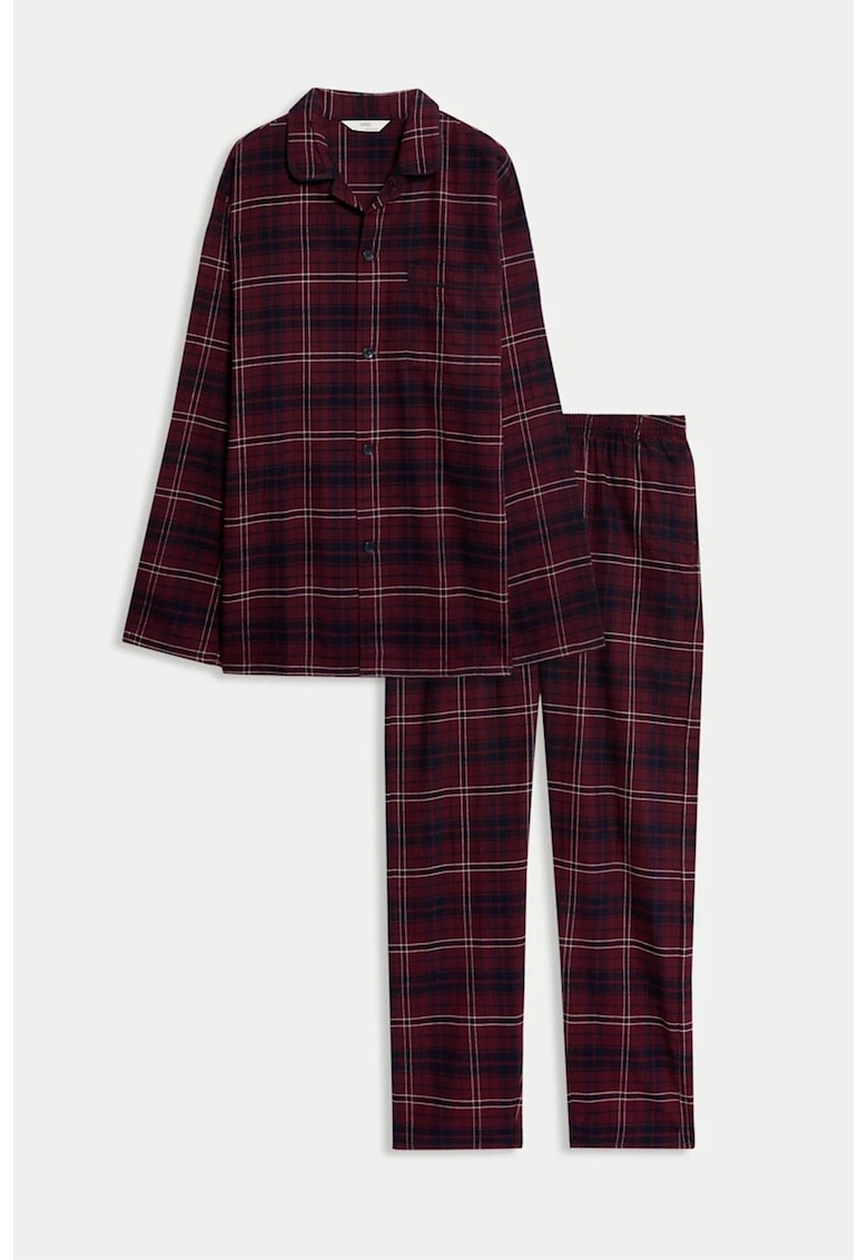 Карирана памучна пижама – Бордо/Тъмносин Marks Spencer