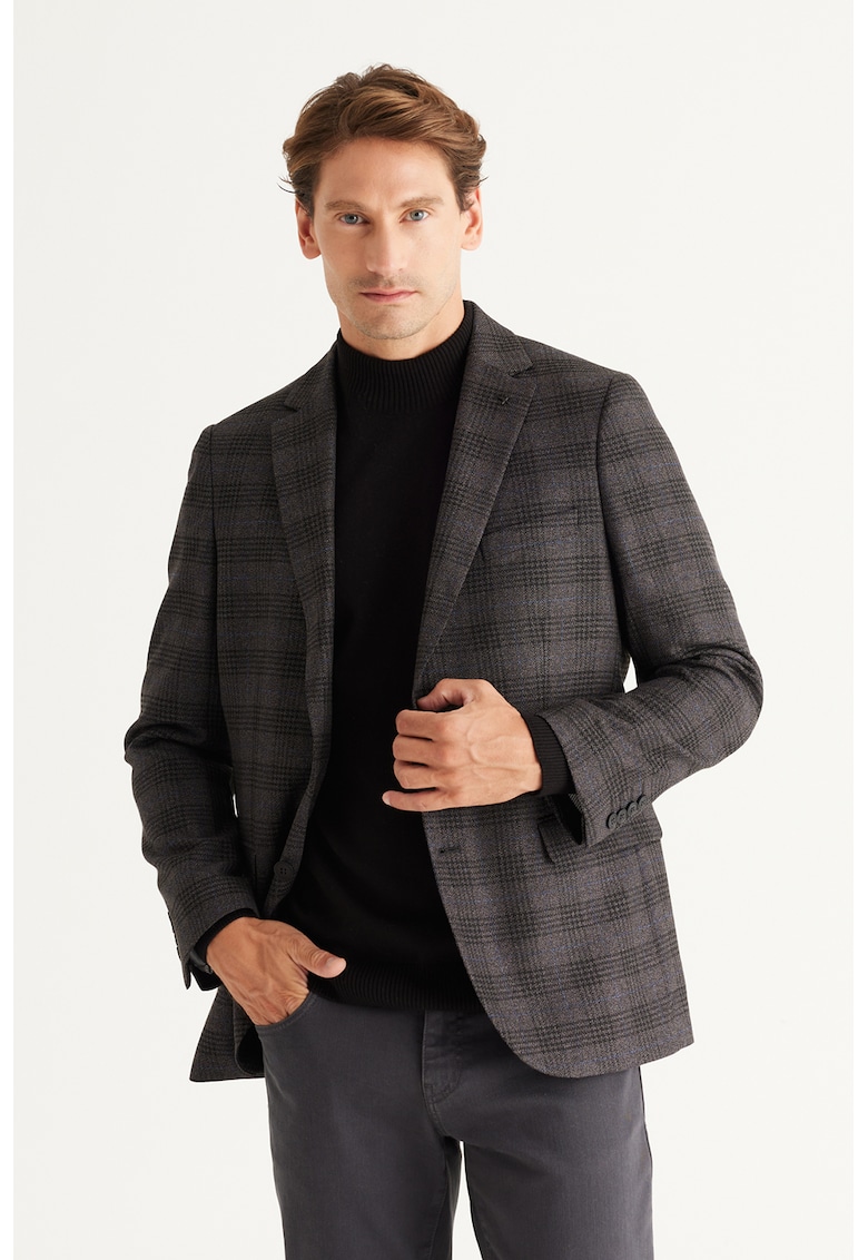 Карирано сако с джобове с капаче – Меланж тъмно сиво ACCo